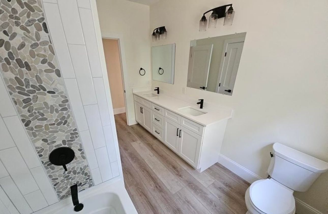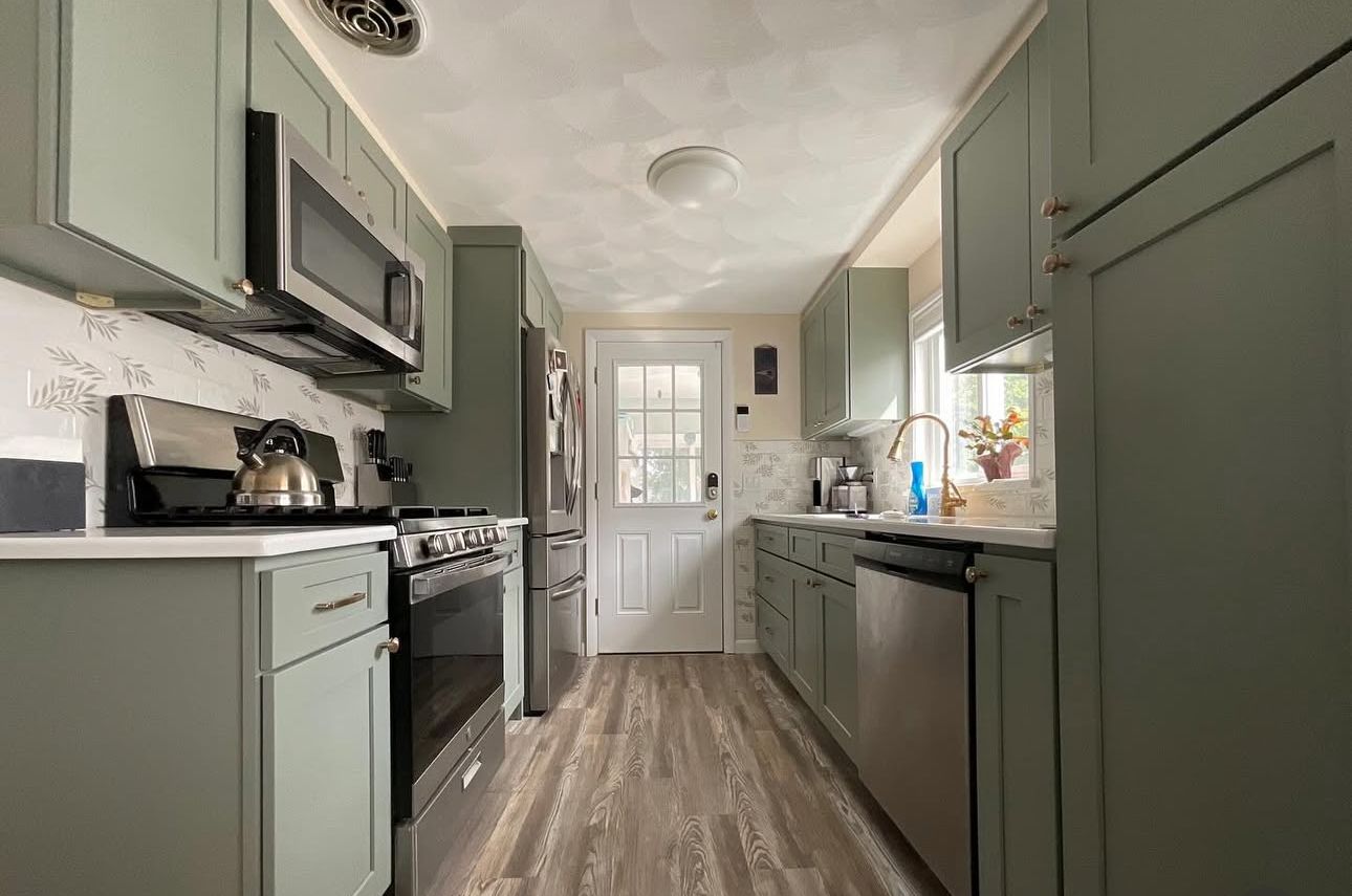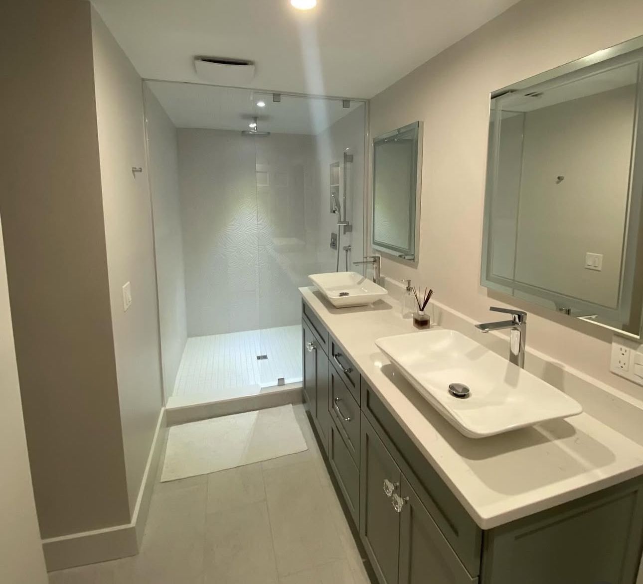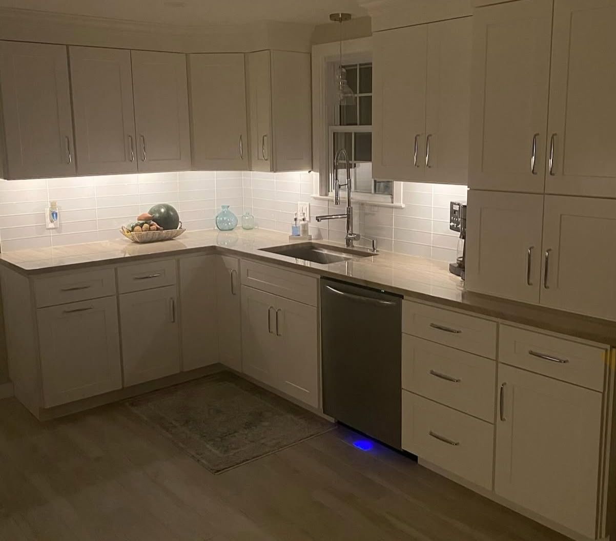 This stunning kitchen showcases a perfect blend of modern and classic elements. The sleek, minimalist cabinetry provides a clean, neutral canvas, while the subway tile backsplash in a soft gray hue adds subtle texture and a timeless feel.